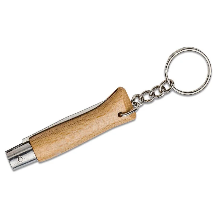 Nož Opinel Inox N°04 je preklopni nožić dužine oštrice 5cm, koji sa strane drške ima mali lančić koji omogućava da nožić postane privjesak.