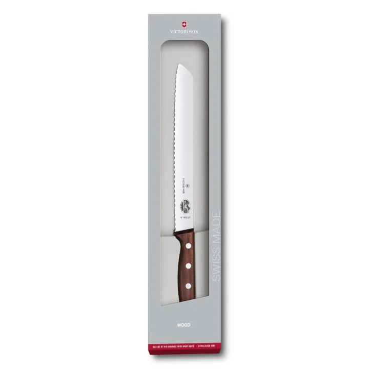 Victorinox nazubljeni nož oštrice 21cm i drške od drveta. Ovaj nož osim što lakoćom reže kruh, odlično reže sve vrste kobasica, sira, povrća i voća do najtanjih komada u savršenom rezu.