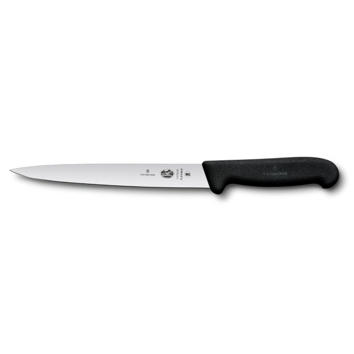 Nož za filetiranje sa savitljivom oštricom dužine 20 cm. Drška mu je robusna u crnoj boji izrađena od fibrox-a (protiv klizanja).