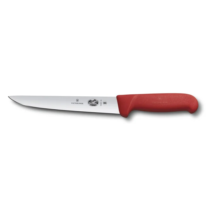 Mesarski nož sa dužinom oštrice 18cm. Drška izrađena od crvenog fibrox-a (protiv klizanja).