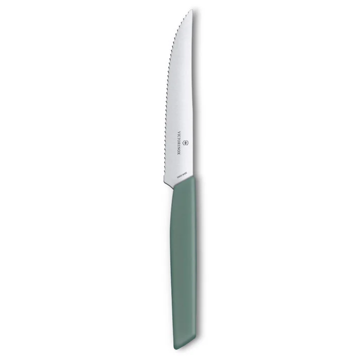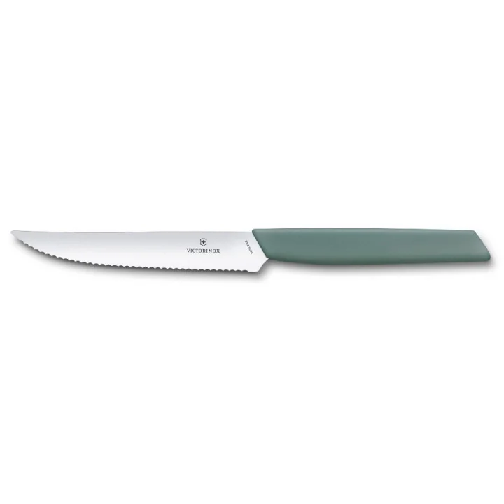 Victorinox kuhinjski nožić iz Swiss Modern linije zelene boje drške. Ovo je klasičan oblik nožića za rezanje odrezaka i općenito sve vrste mesa i priloga.
