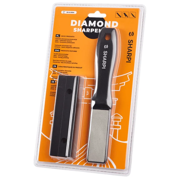 Dvostrani dijamantni brus za noževe dizajniran za kućne kuhare i profesionalce. S granulacijom od 600 i 1000, ovaj brus nudi i grubo i fino brušenje, pogodan za širok raspon noževa. Dijamantni abraziv osigurava oštrinu i preciznost, poboljšavajući iskustvo rezanja.