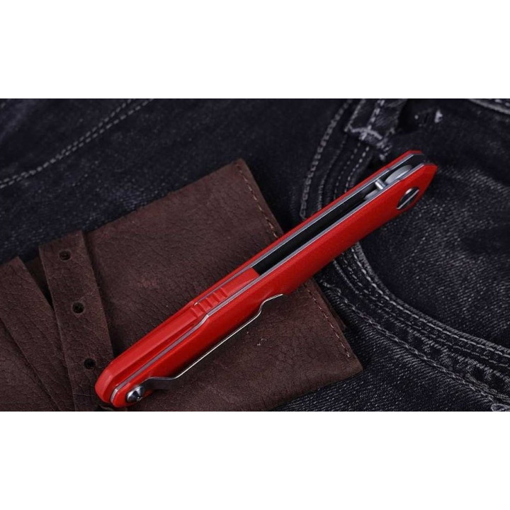 Mr.Blade Astris je elegantni nožić sa oštricom u D2 čeliku, a drške su G10 crvene boje. Sa stražnje strane drške postoji utor za vezicu.