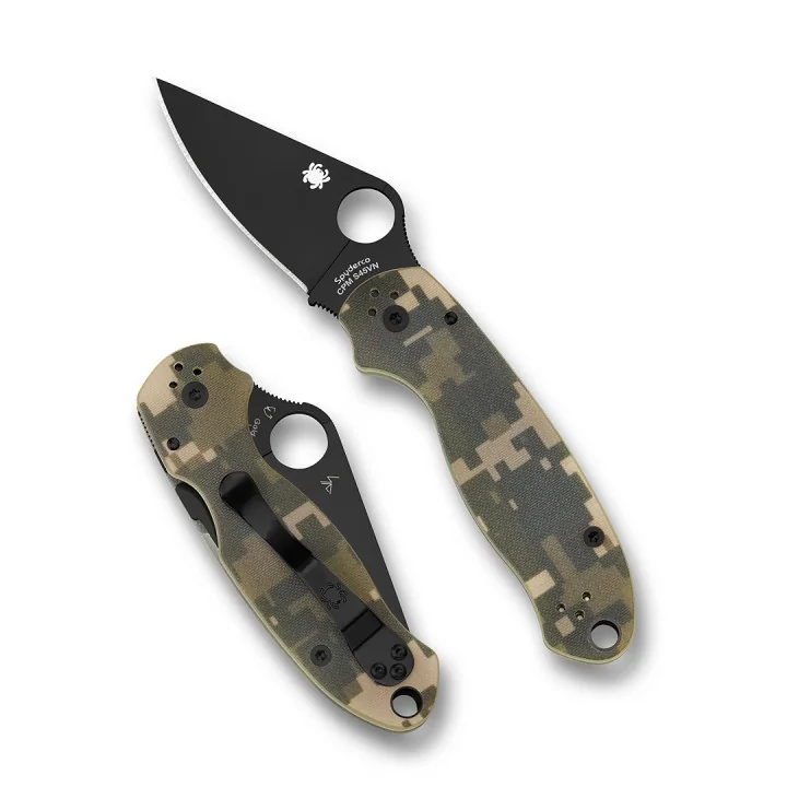 Para 3 s CPM S45VN čeličnom oštricom dostupan je u nekoliko različitih varijacija. Osnovni model ima crne G-10 ljuske, bubnjastu završnu obradu oštrice, jarko obrađene okove drške i izbor formata PlainEdge™, CombinationEdge™ i SpyderEdge™. S bubnjasto obrađenom PlainEdge oštricom, dostupan je i s digitalno kamuflažnim G-10 ljuskama drške s peel-ply teksturom. Za one koji preferiraju izgled crne oštrice, nudimo Para 3 s PlainEdge oštricom prekrivenom nereflektirajućim DLC (Diamond-Like Carbon) premazom i izborom crnih ili digitalnih kamuflažnih G-10 ljuski. Obje verzije s crnom oštricom također imaju odgovarajuće crno obložene obloge i okove drške.