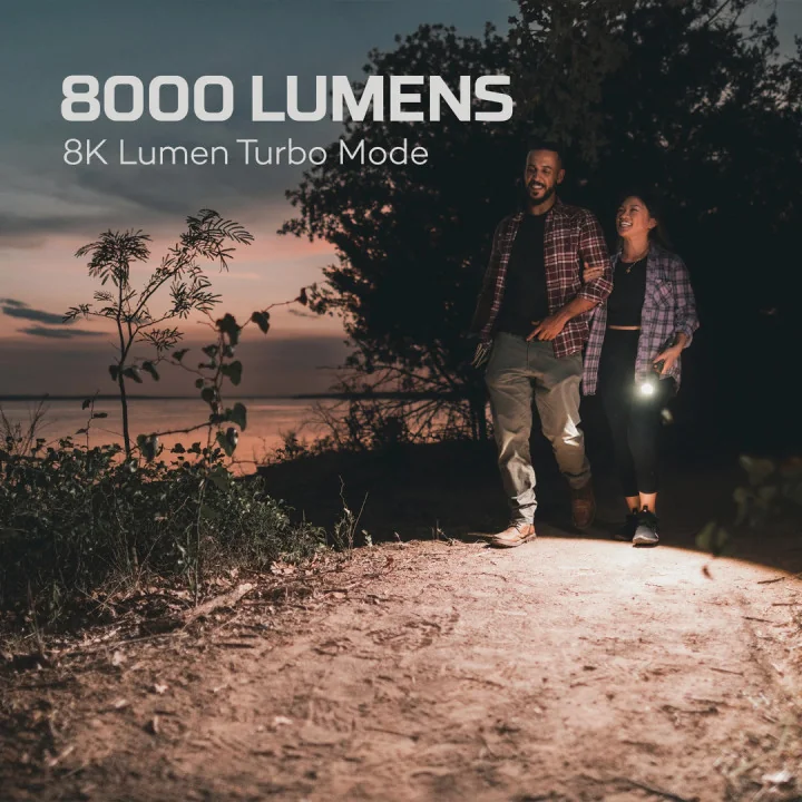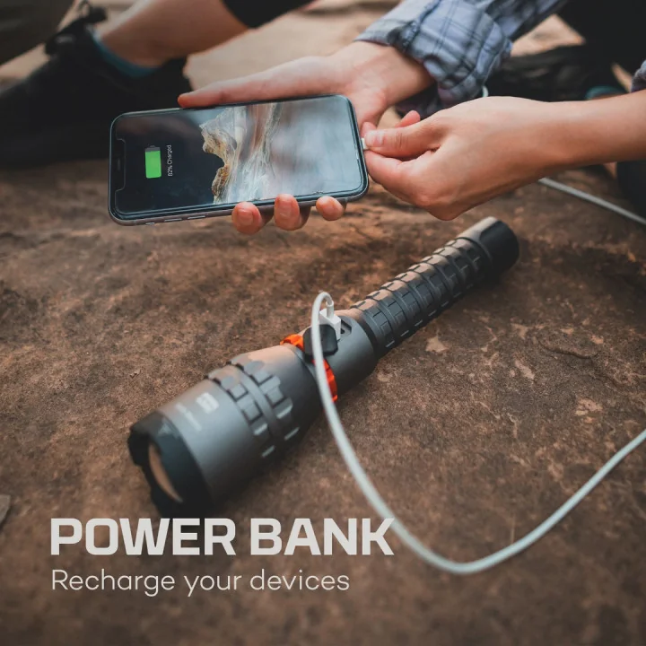Nebo Davinci™ punjiva svjetiljka od 8000 lumena je snažna ručna svjetiljka s 5načina osvjetljenja. Rotirajući prsten na svjetiljci olakšava prebacivanje između načina rada, a snažna LED dioda u ovoj svjetiljci može osvijetliti 206 metara. Uključene 2x 5000mAh Li-ion 26650 7.4v baterije mogu služiti i kao PowerBank. Kabel za punjenje je uključen u paketu.