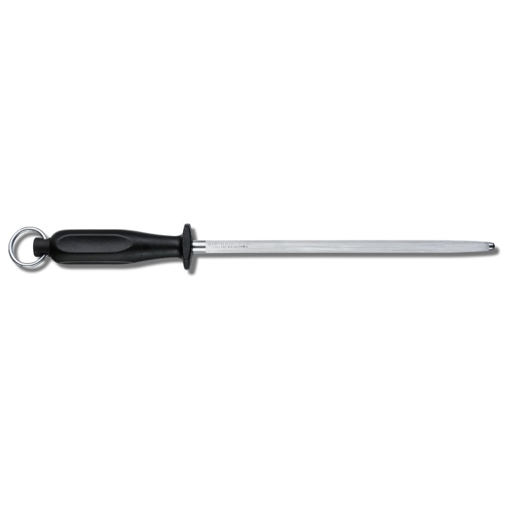Okrugli kuhinjski brus za srednje-fino oštrenje. Dužina brusnog dijela je 25cm. Na vrhu ima alkicu da se može objesiti.
